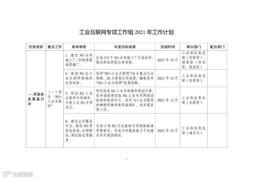 《工业互联网专项工作组2021年工作计划》印发(附图解)