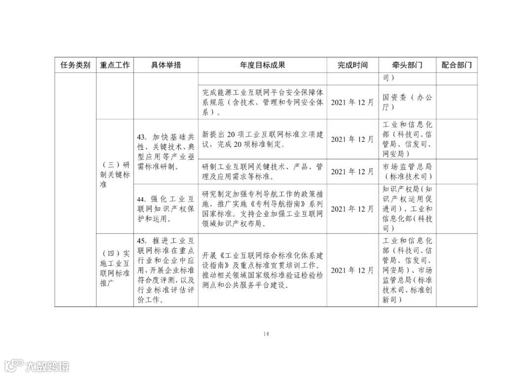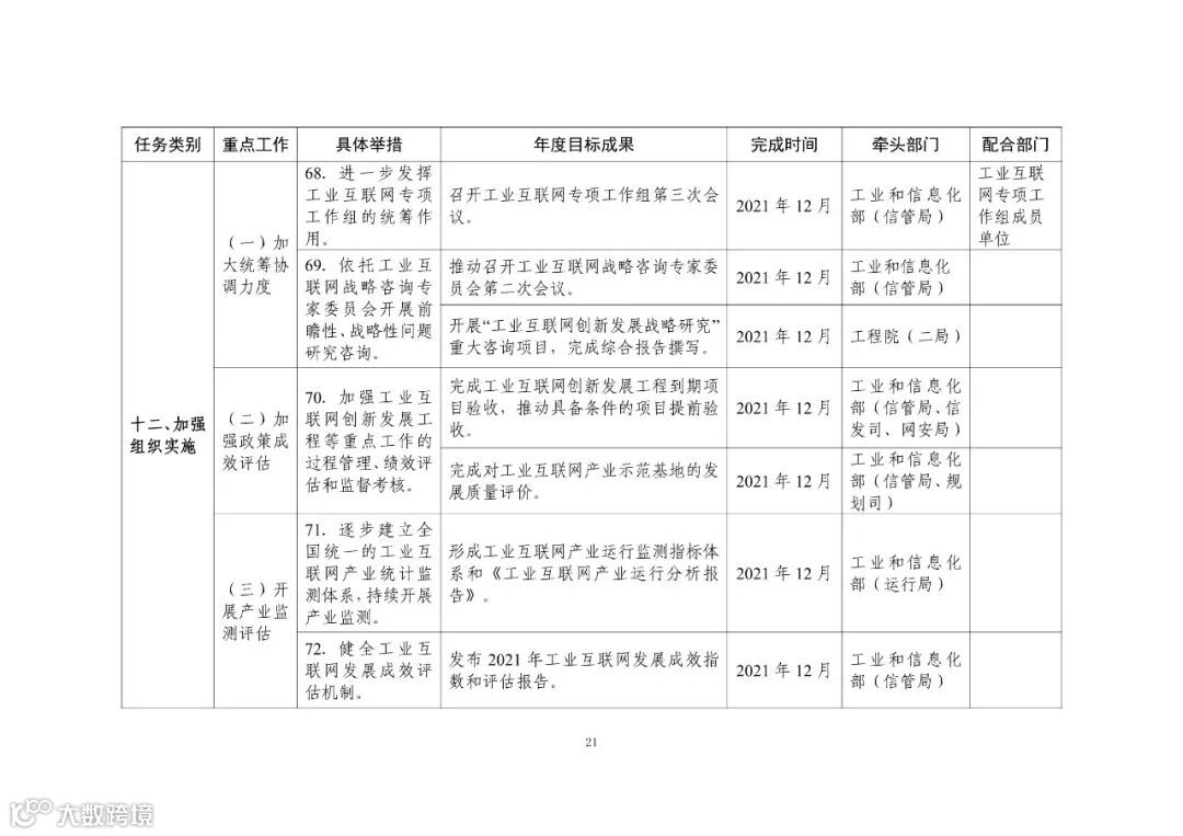 关于印发《工业互联网专项工作组2021年工作计划》的通知