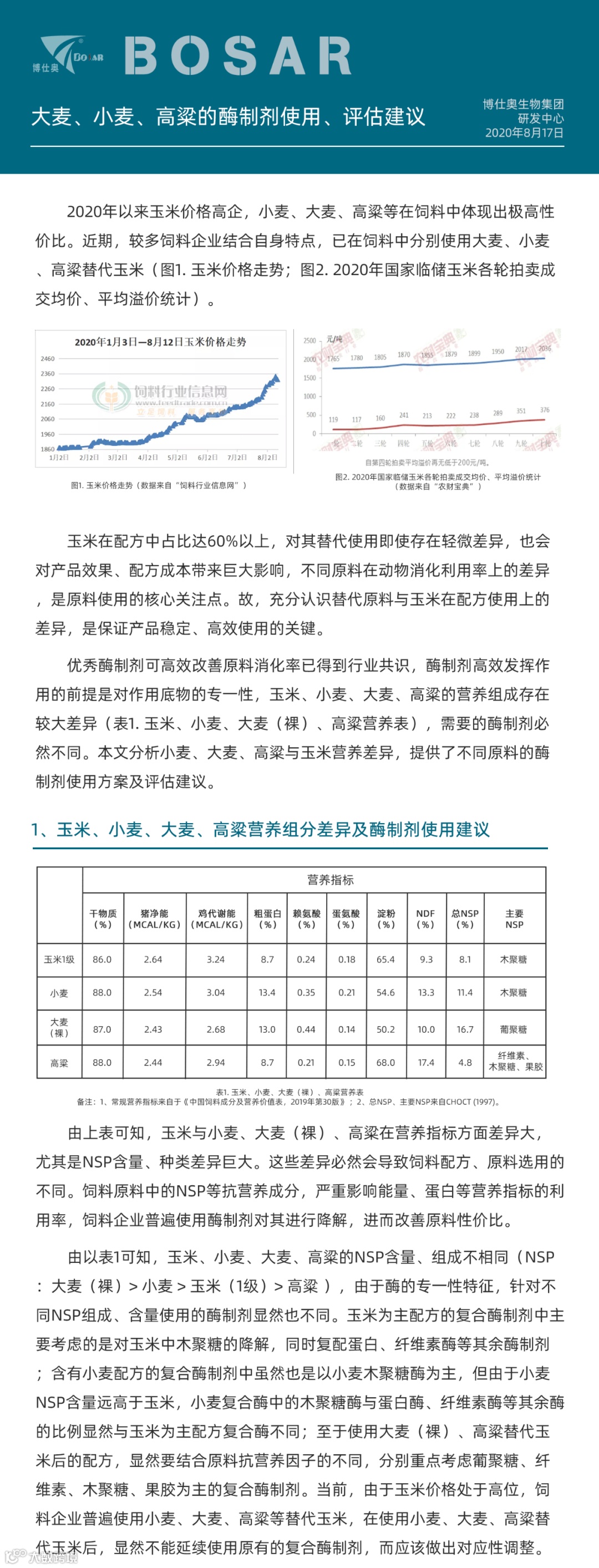 大麦、小麦、高粱的酶制剂使用、评估建议