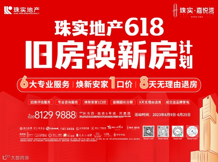 珠实集团将提供包括旧房价值评定、专业咨询等6大专业服务;焕新安家一口价限时放送,品质好房欢乐购;成功认购珠实·嘉悦湾送品牌家电,还将享受首期超长分期!8天无理由退房的贴心全周期服务!(活动时间:6月9日-6月25日)