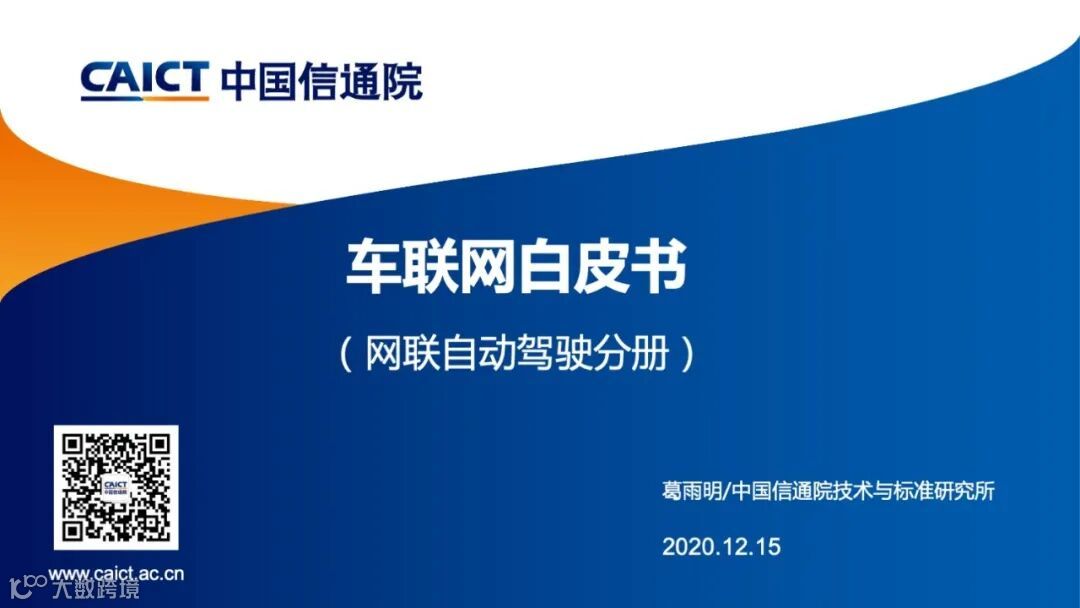 2020年12月15日,在中国信通院ICT+深度观察报告会期间,中国信息通信研究院葛雨明博士发布了《车联网白皮书(网联自动驾驶分册)》。