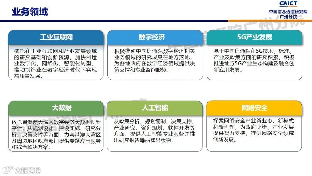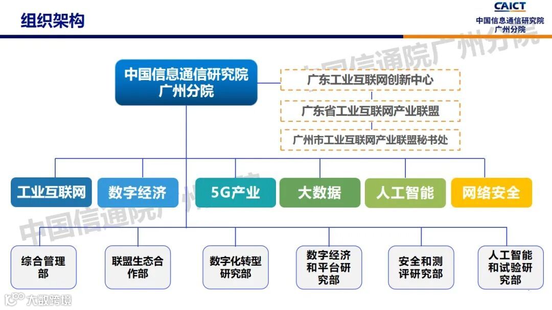 中国信息通信研究院广州分院(以下简称“广州分院”)经工业和信息化部批准于2013年正式成立,根据中国信通院与广东省工业和信息化厅战略协议,由中国信通院与广州开发区政府联合成立的地方政府高端专业智库和产业创新发展平台。