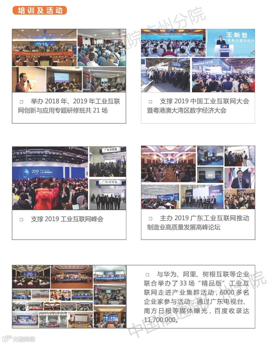 广州分院作为中国信通院的内设机构,依托中国信通院雄厚的研究基础和创新资源,专注于工业互联网、数字经济、5G、大数据、人工智能、区块链、工业与信息安全等领域的技术研发测试与应用推广,以促进工业互联网发展,加快推进工业企业数字化转型升级。秉持着“厚德实学 兴业致远”的文化理念,深入结合区域内重点行业和企业特点,为广东各级政府和企业提供相关规划咨询、产品测试、数字化转型评估、新技术推广应用等公共创新服务,是工业和信息化部与广东省实施发展工业互联网国家战略的推动者和践行者。