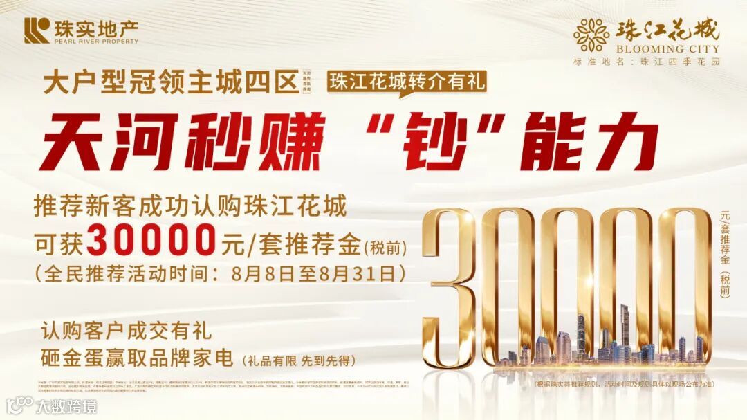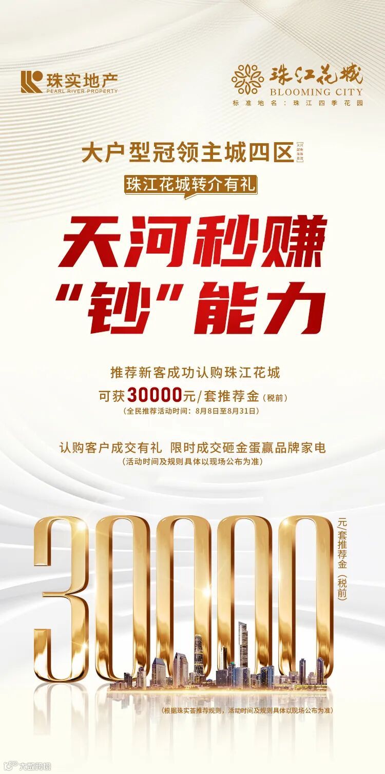 珠江花城福利大派送!推荐成交奖励3万元/套(税前)