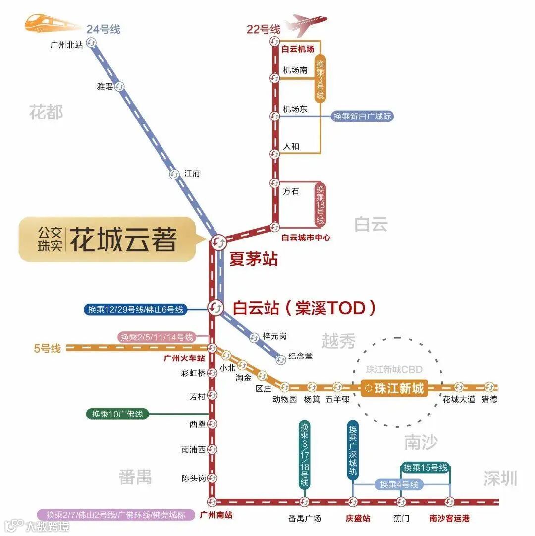 公交珠实•花城云著既22号线(在建)和24号线(规划)换乘站夏茅站完成后,双地铁运行,将实现对接广州城市各大重要交通枢纽的链接。同时双地铁链接市内多条地铁线路换乘,未来将串联起广州的人流与商机,爆发出巨大势能。