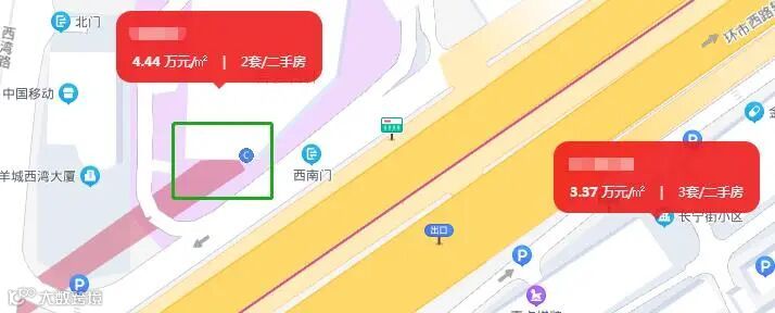 以广州5号线西村地铁口为例,位于地铁C出口的08年建的小区均价4.44万元,相比于对面16年建设,不临地铁口的小区才3.37万元。这1.07万/㎡的差价,就是地铁口房价的差异。