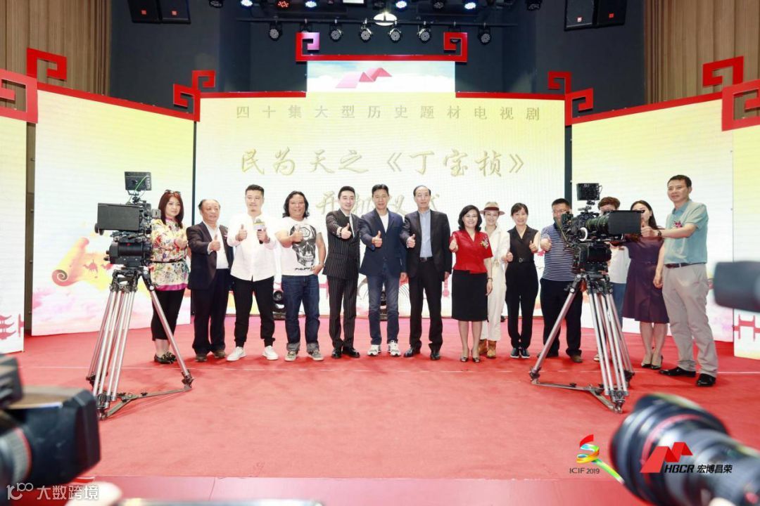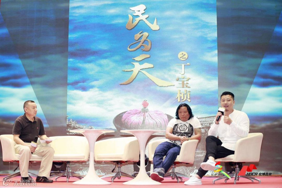 下图为著名编剧刘毅、导演殷飞为《民为天之丁宝桢》做推介。