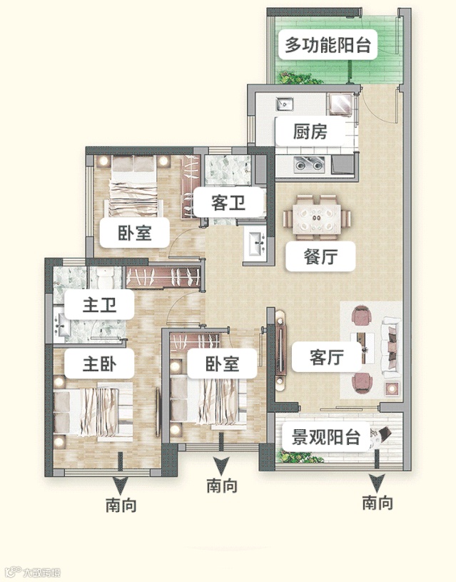南向三面通透