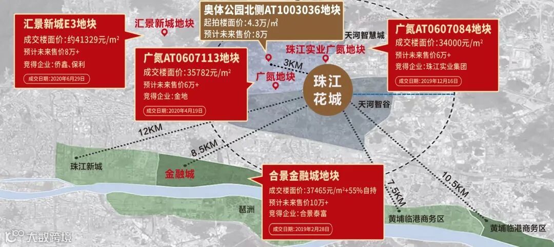 10月17日,天河区奥体公园北侧北AT1003036地块挂牌出让,这宗牛奶厂板块的用地,起拍楼面地价就已高达4.3万元/平,封顶楼面价6.4万/平。