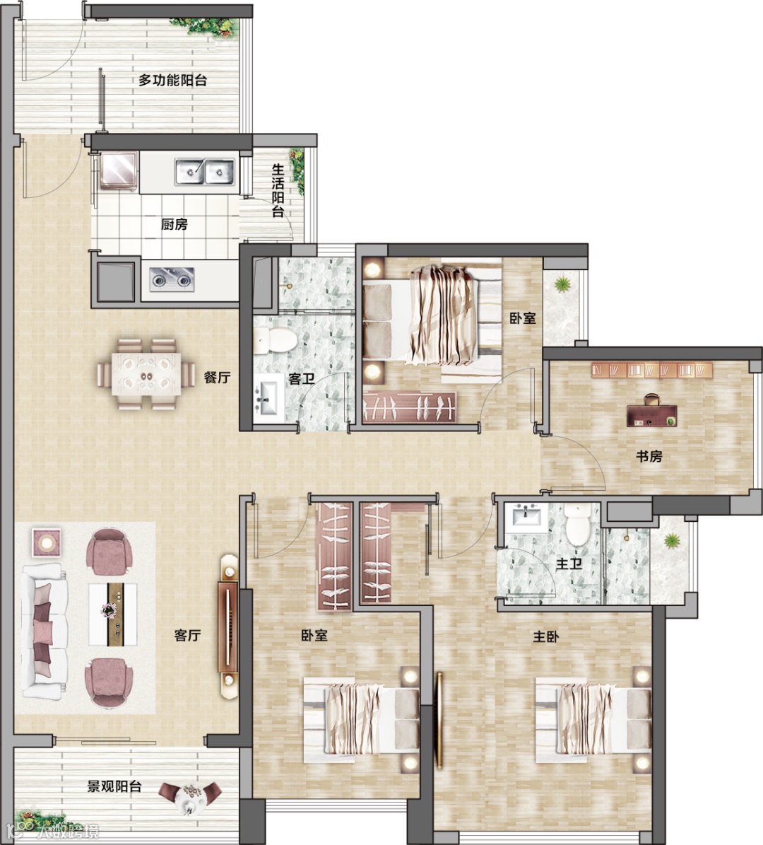 珠江花城三期89㎡3+1房户型图