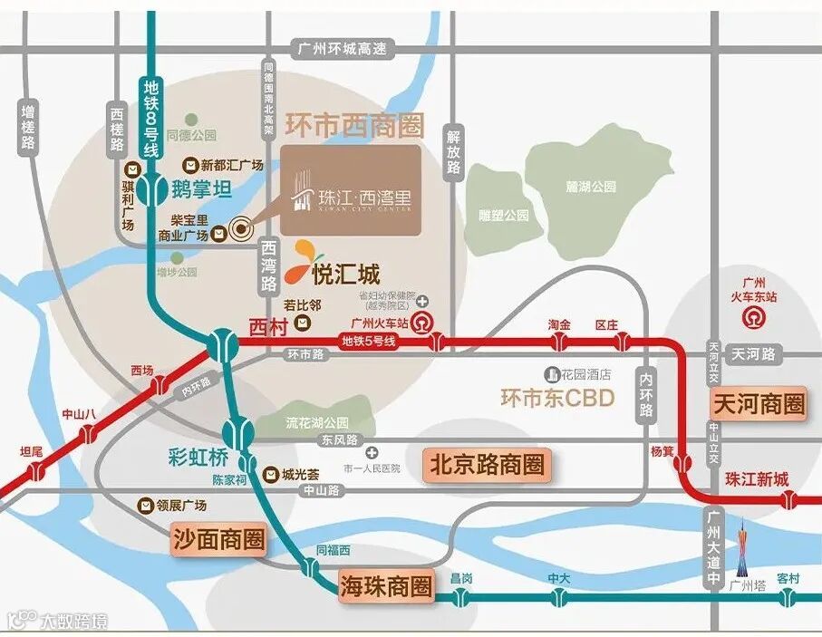 广州最早的富人区、中国首家中外合资的五星级酒店白天鹅宾馆、广州第一条地铁1号线、环市西火遍全球的商贸、而珠江·西湾里所在的西湾里片区地铁商业更是全面焕新。