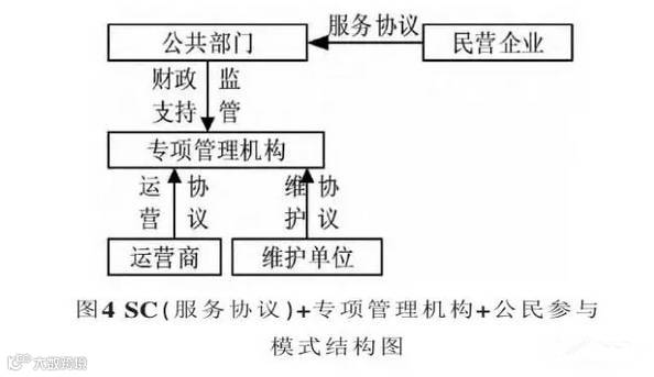 2.SC(服务协议 )+专项管理机 构+公民参与 。 这主要针对新建成的,或原来已有,但管理效率低下的基层公共文化设施。 政府设立基层公共文化设施专项管理机构, 负责设施的运营和维护以及专项经费管理,同时将公共文化服务功能外包给民营合作者,将公民对公共文化服务的满意度, 作为专项管理机构和民营合作者的绩效评估重要依据。 这种模式的优点: 一是保证基层公共文化设施运营和维护专业化;二是专项经费管理能够使得专款专用,防止基层文化设施管理经费不足。 缺点:专项管理机构若不采用市场化管理,容易成为政府的附属机构,从而导致效率低下的风险。