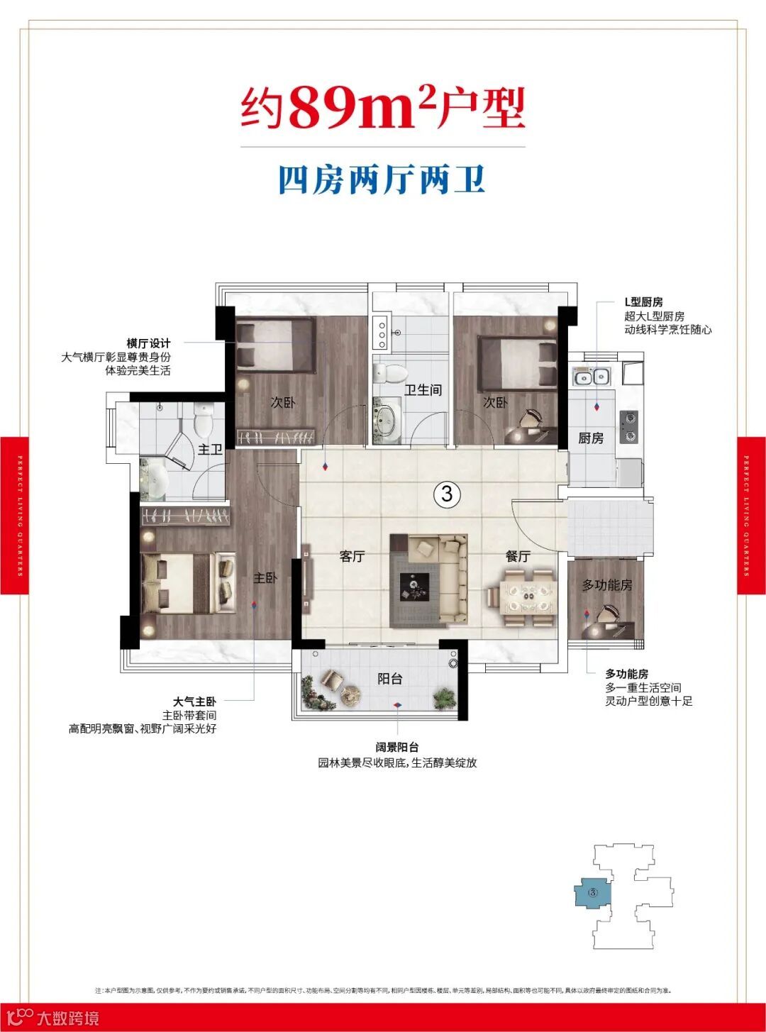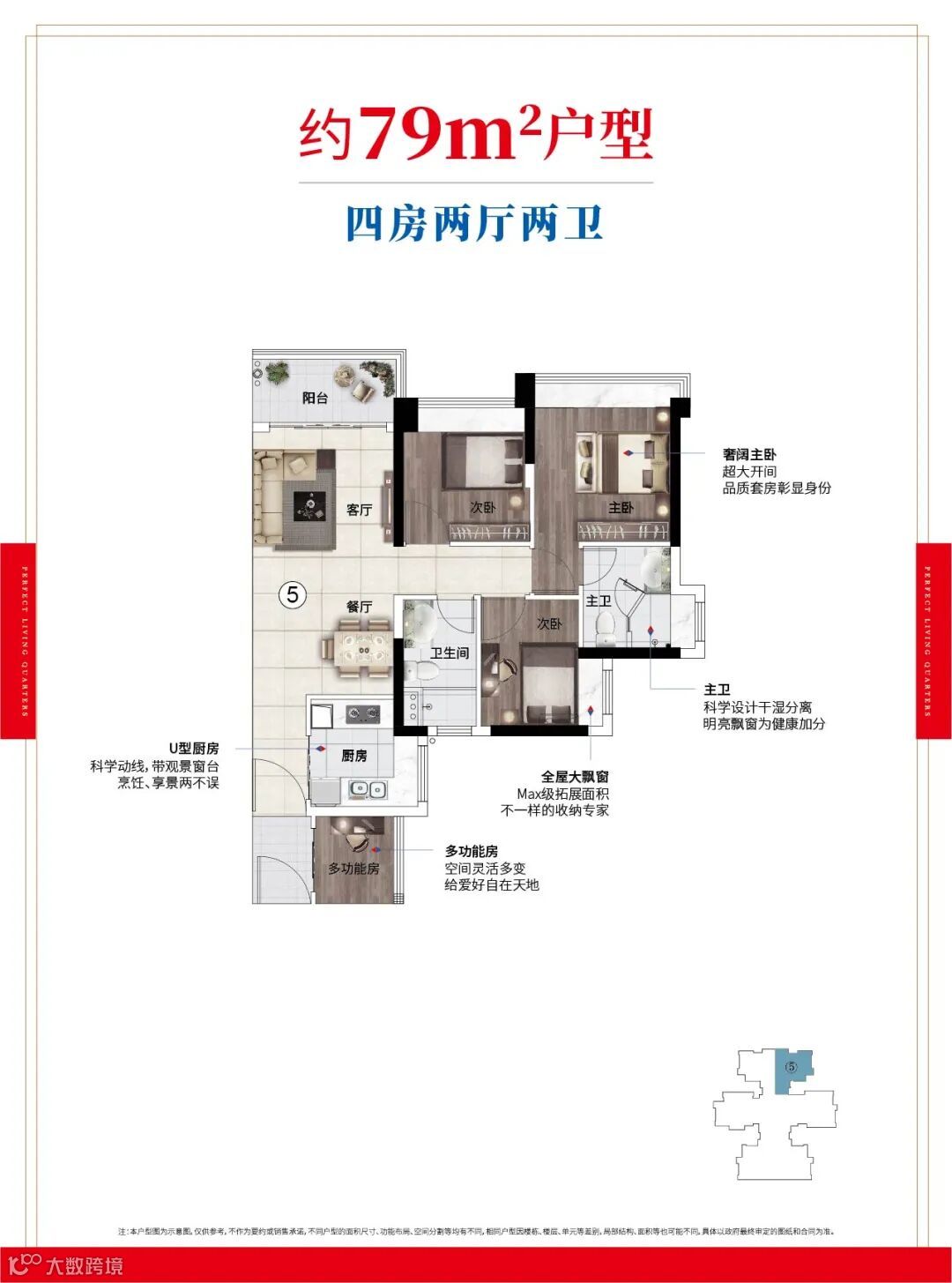居住在珠江·花屿花城,不仅可以享受到全龄教育的利好,更能升级生活品质!建面约79-98㎡全系带主套4房,总价148万起,同等面积多享一房一卫,一步到位实现品质生活蓝图!主卧套房带独立卫浴间,宽敞客厅、多开间朝南、房间高配大飘窗,通风采光效果佳,整体空间明亮开阔,居住更健康的户型才是真正的“硬核产品“。
