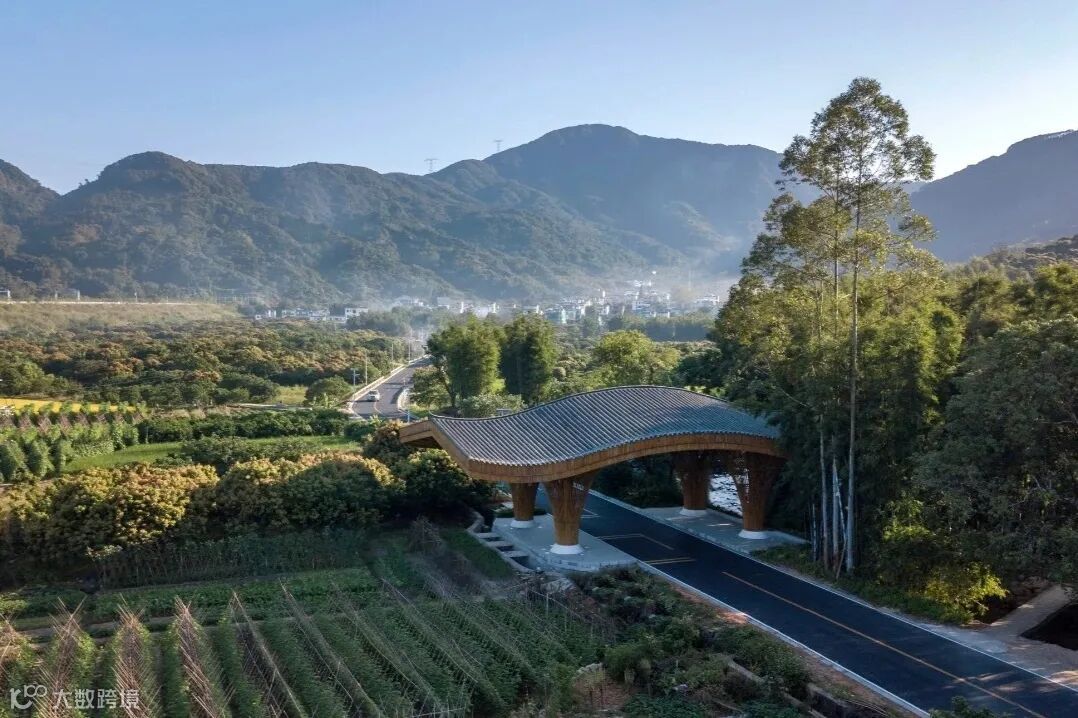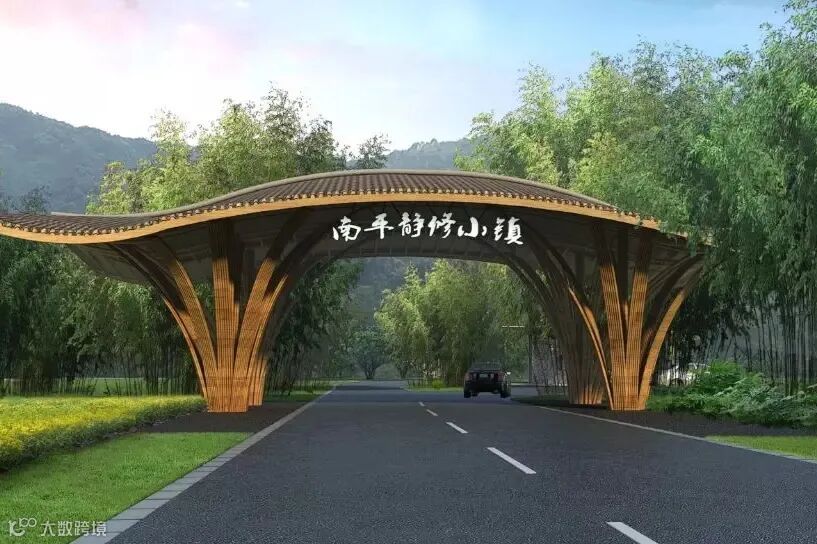 在入口处就营造出了一种翠竹、清幽之境。瞧那大门设计,以凤凰造型抽象演变,利用竹材料的轻盈打造,展示小镇形象与魅力,舒服、惬意。
