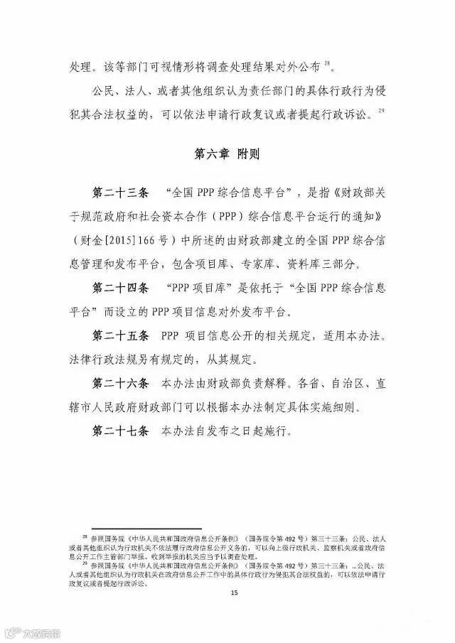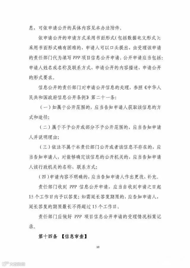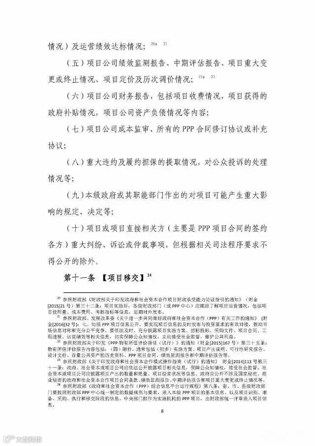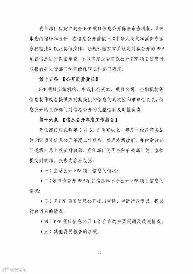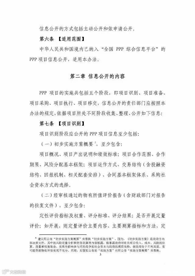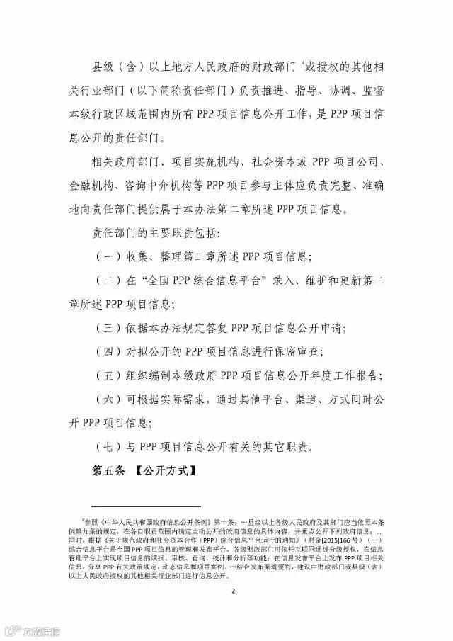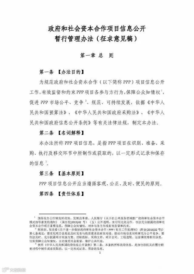 为规范PPP项目信息公开工作,有效监督和约束PPP项目各参与方行为,保障公众知情权,促进PPP市场公平、竞争、规范、可持续发展,财政部PPP中心暨微信公众号“道PPP”刚刚发布了《政府和社会资本合作项目信息公开暂行管理办法(征求意见稿)》,以下为《暂行管理办法》全文。
