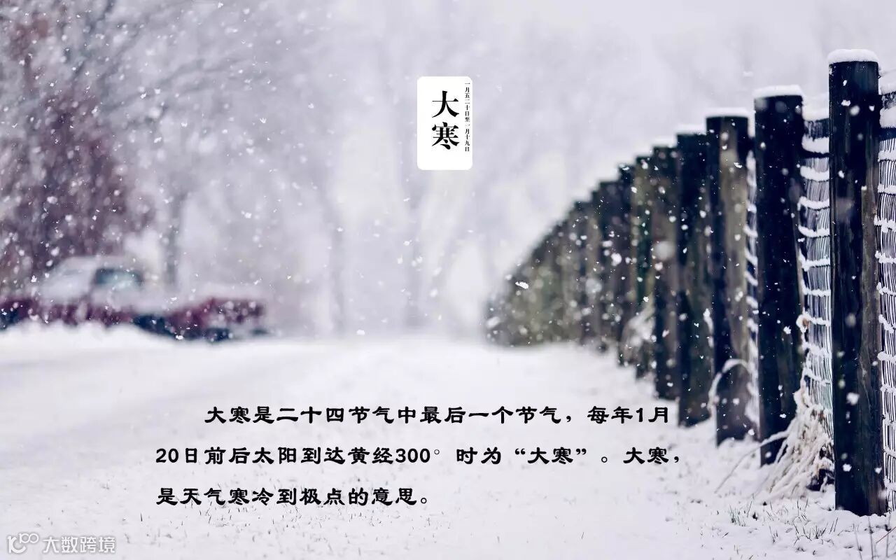 今天是一年二十四节气中的最后一个节气,大寒。按过去民间的风俗,每到大寒时节,人们会开始忙着做一些除旧布新、腌制年肴、准备年货之类的事情。所以,大寒既是一年中最寒冷的时候,也是开始有年味儿的一天,这种‘年味儿’直到‘小年’达到高潮。