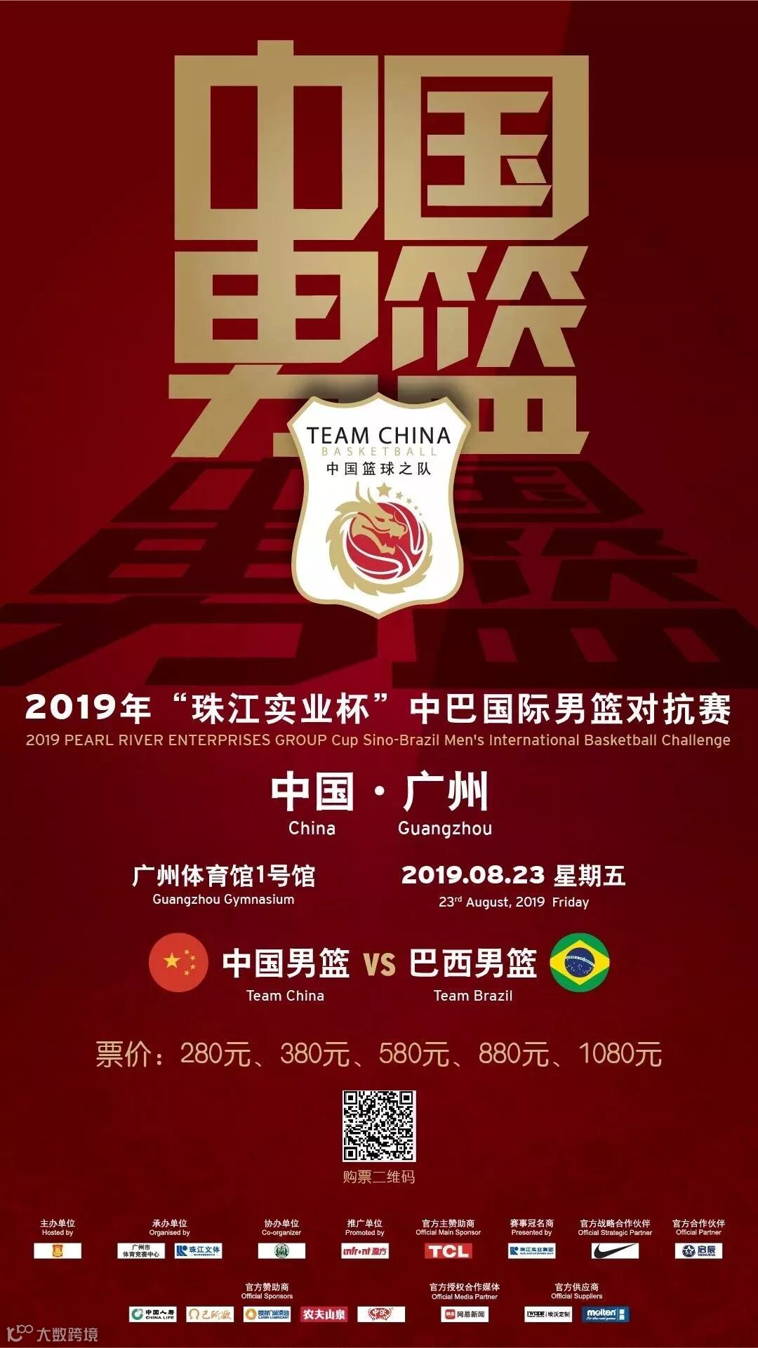 您与中国男篮一线球员此刻仅隔一个二维码的距离,长按下图识别二维码购买2019“珠江实业杯”中巴国际男篮对抗赛门票,近距离为中国男篮加油!