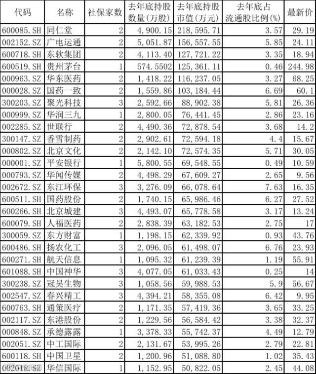 从这个角度看,社保基金所积极布局的个股尤其值得大家关注。整理下目前年报所泄露的社保基金重仓股,给大家一个投资参考。