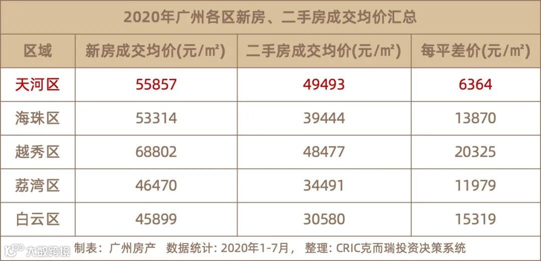 根据克而瑞统计,今年天河二手房均价为49493元/平,一手房为55857元/平,一二手价差仅为6364元/平。