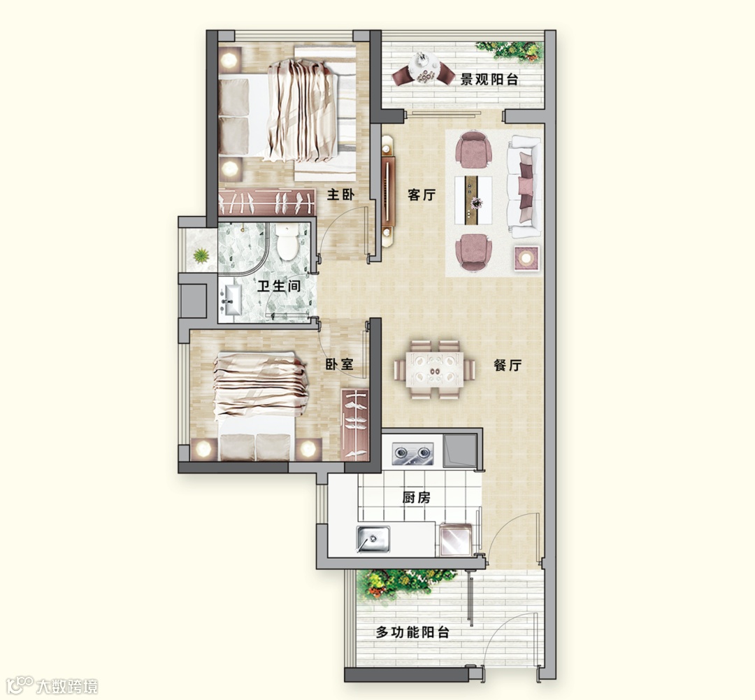除了两大卧室,该户型坐拥创意空间,做书房,或者摆一个榻榻米,当成休息室妥妥的。