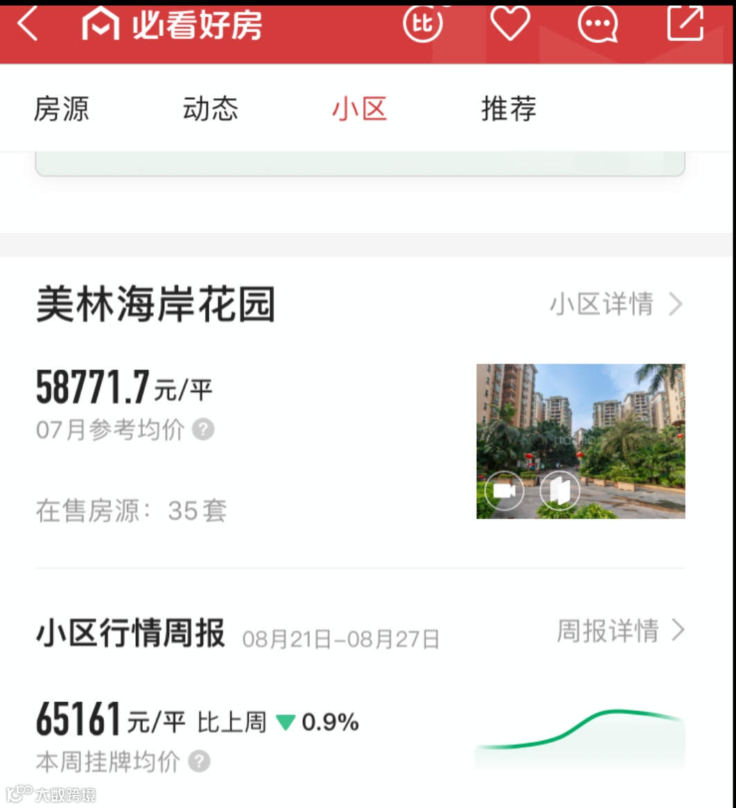 又比如骏景花园,同样北向小三房单位,7月网签价不过4.6万/平,如今挂牌价已达5.1万/平。类似的社区,还有中海花城湾、中海康城、华景新城等。
