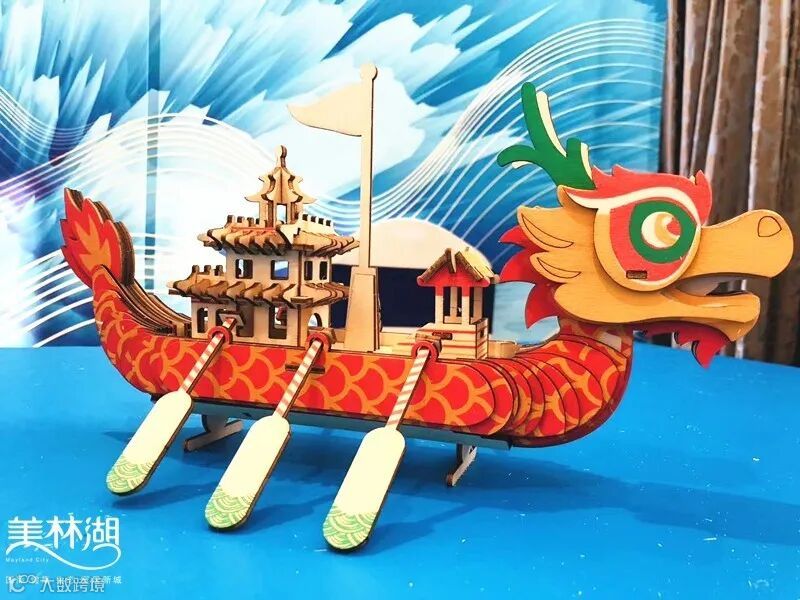 把一块块小模型拼装成豪迈的龙舟