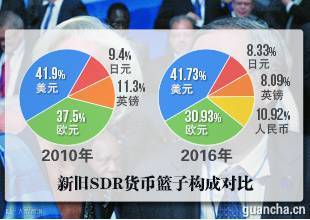 先解释一下什么是SDR?“SDR 即特别提款权(Special Drawing Rights),是由 IMF 构建的一种准货币,目前仅包括全球范围内四种主要的储备货币——美元、欧元、英镑和日元,权重分别为 42%、37%、11%和 9%。” 人民币加入SDR打破了这种平衡。人民币权重为10.92%,美元、欧元、日元和英镑的权重分别为41.73%、30.93%、8.33%和8.09%。人民币排在第三位。