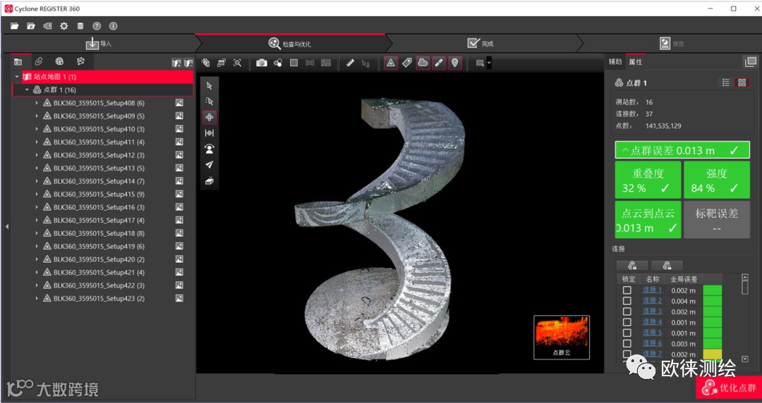 1) 结构扫描,在徕卡Register360智能点云处理软件自动拼接