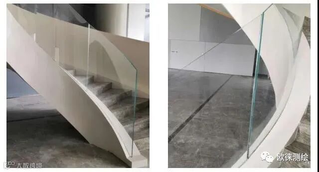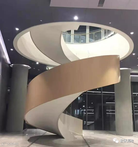 1、拉尺测量+CAD绘图:旋转楼梯玻璃扶手是特殊的异形结构,使用直角尺、钢尺测量然后绘制CAD图下料的方式,并不能形象准确地反映其形状,往往造成偏差。