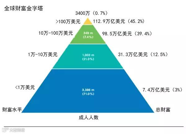 在经济危机后推出了总规模超过2万亿美元QE的伯南克说,QE创造了就业岗位,刺激经济增长,这是为中下阶层服务的政策。但是瑞信的《全球财富报告》却讲述了一个不一样的故事:0.7%的人拥有全世界近半的财富,而底层的71%的人口只拥有全球3%的财富。