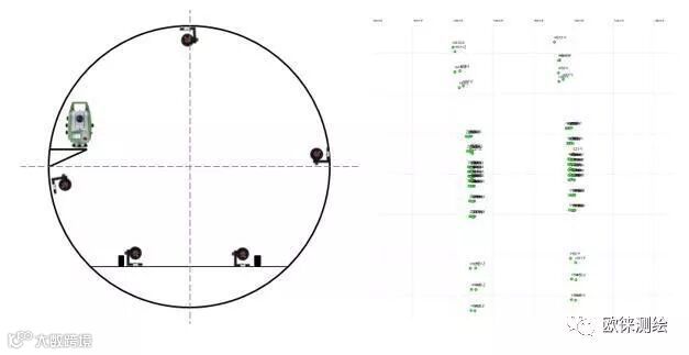 项目采用 2 台 TM50 监测机器人对既有线区间隧道影响范围内的道床、隧道结构等进行变形监测,在监测区间外两侧稳定区域各布设 6 个基准点,左右线共 24 个;监测点在顶管中心下方相对应的隧道管壁及轨道道床平均布设,断面间距约 10 米,每个断面布设 5 个监测点,左右线共布设 90 个。