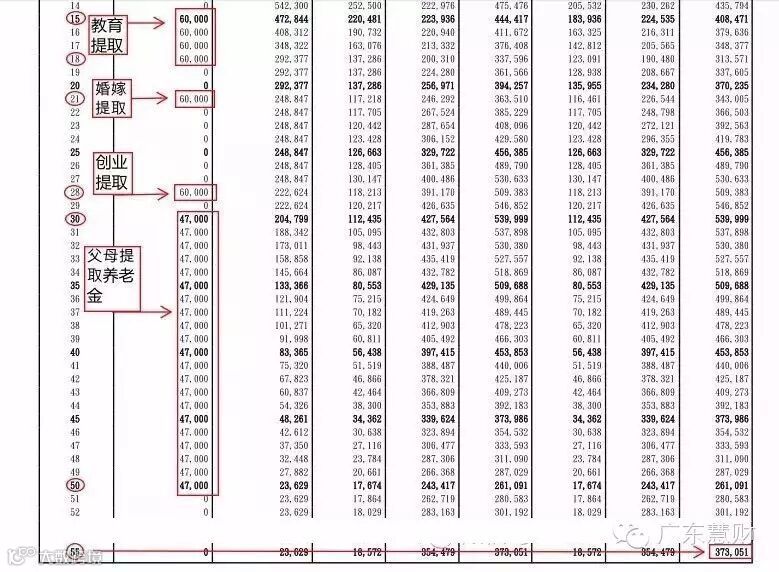 E.父母和孩子领取上述A、B、C、D之现金后,于您挚爱的孩子60岁之时,这一份保单账户内还剩373,051元,可供其随时提取。