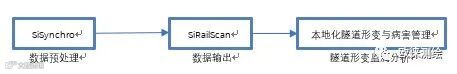 SiTrack:One内业数据处理首先通过SiSynchro进行原始数据预处理,生成轨迹,配付CPIII控制点,然后在SiRailScan软件中进行轨道线提取,数据转换并输出Las点云,然后将点云导入到本地化软件——隧道结构形变与病害管理中进行自动化隧道收敛、椭圆度、导高、错台、病害等分析,并自动导出分析报表。