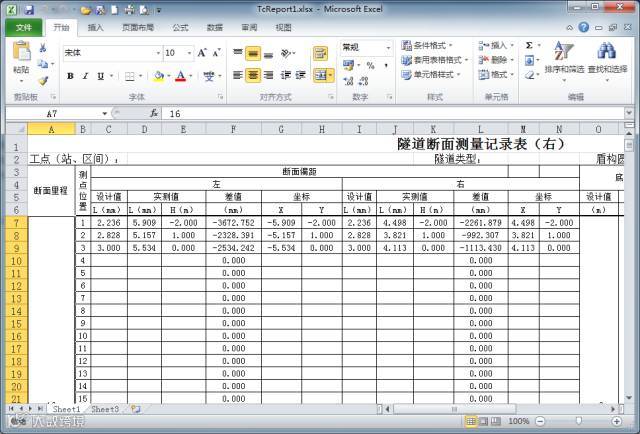 报表输出:将各个断面的净空数值按照报告模版的样式输出为Excel格式的报表