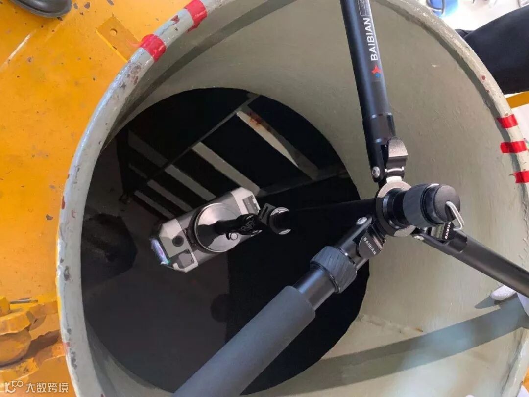 在计量口上沿架设倒置脚架,将徕卡RTC360稳定倒置悬挂脚架上,并调整高度使扫描仪中心位于计量口下沿0.2m处。