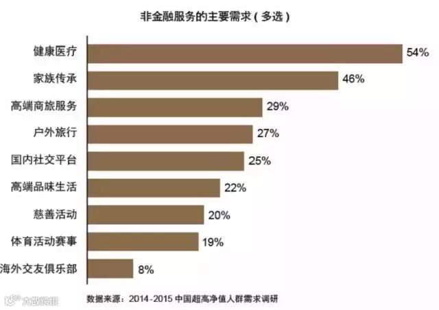 早前民生银行与胡润在京联合发布的《2014-2015中国超高净值 人群需求调研报告》,针对中国大陆地区总资产超过5亿元人民币的超高净值人群的需求开展专项研究,总结出了中国高净值人群的构成、特征、金融服务需求和非金融服务需求等方面的特点,提出了高净值人群的三大特征、十大需求。