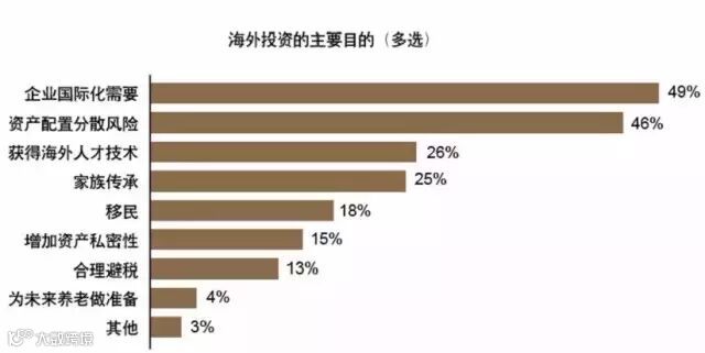 超过八成表示未来有海外投资需求,而目前已有半数在进行海外投资。海外投资目的以企业国际化和资产配置分散风险为主,两者分别占49%和 46%。在海外投资中,面临的最大挑战是投资风险评估和了解当地法律税收政策,两者分别占49%和47%。而银行和社交平台成为获取海外投资信息的首选渠道,两者分别占29%。
