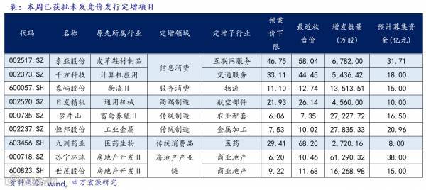9、本周重点关注借壳转型互联网平台、布局城市交通信息、深耕高端制造及医药次新股定增项目标的:泰亚股份、千方科技、日发精机、九洲药业。