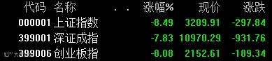 沪指收盘下跌8.49%,刷新7月27日8.48%八年来最大单日跌幅纪录。