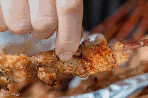 纯羊腿肉胖瘦均匀,表面泛着油光里面带有肉汁,柔嫩多汁,吃起来完全不干,强势推荐!