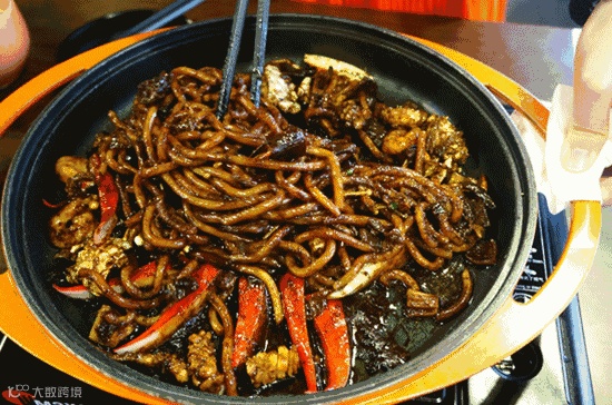 这家滋滋作响的铁盘炸酱面,酱香浓郁,咸中带甜,口感上有一种恰到好处的微妙。分量超级超级大,一次性满足你的心心念念。