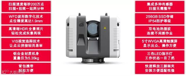 | 快速释放三脚架夹,安装方便 RTC360可快速安装在轻质碳纤维脚架上,且具有常规基座的转换器,使用便捷 ![]() |