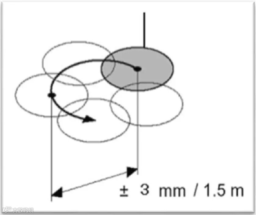 A: 徕卡全站仪激光对中器对中精度一般是 1.5m处:1.5mm。如图 2 所示,在仪器整平的情况下,当仪