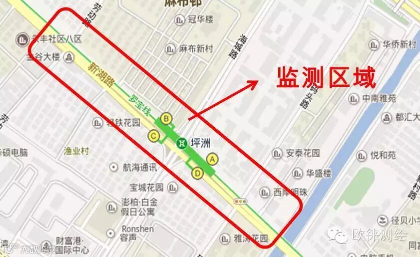 本项目场地东北侧为在运营的地铁罗宝线坪洲站及区间隧道。地铁线距离基坑很近,对变形要求十分严格,故需要在基坑施工过程中监测既有隧道结构变形情况,并作出有关预报。为业主、监理及施工方提供预报数据,跟踪和控制施工进程。