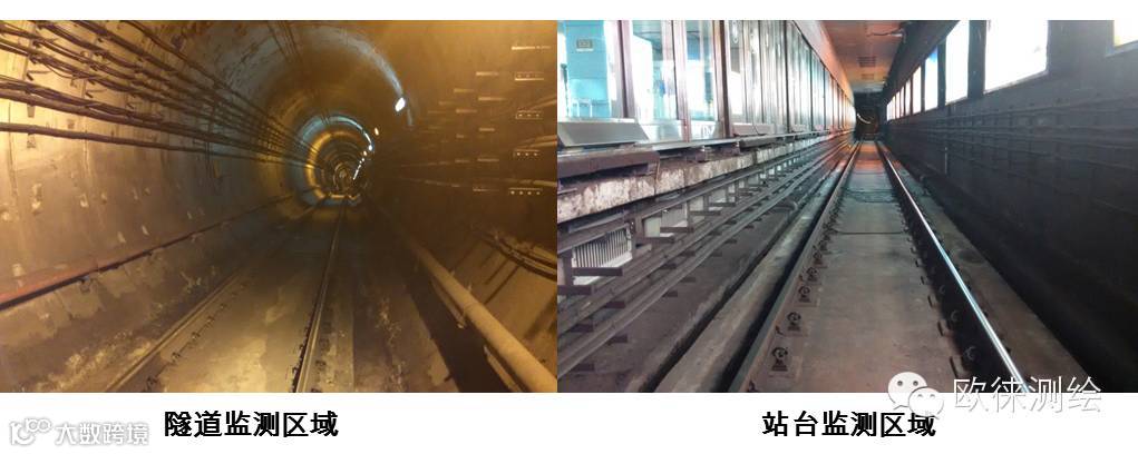分别在地铁站点两端处各安放2台0.5秒TM50精密监测机器人,在轨道两侧轨道及墙壁埋设棱镜,每隔10m一个,一直延伸到 260m 处。后视定向后,分别对这些监控点,进行首期的自动测量,并将第1期数据作为参考数据,后期数据与第1期数据进行对比,显示出各点的位置沉降情况。