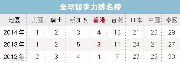 根据瑞士洛桑国际管理发展学院发表的《2015年世界竞争力年报》,香港在国际竞争力排名榜上由去年的第四位升至第二位。