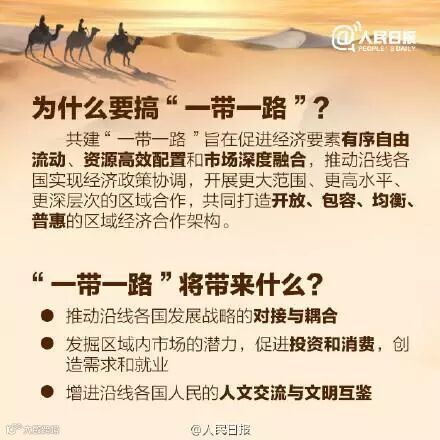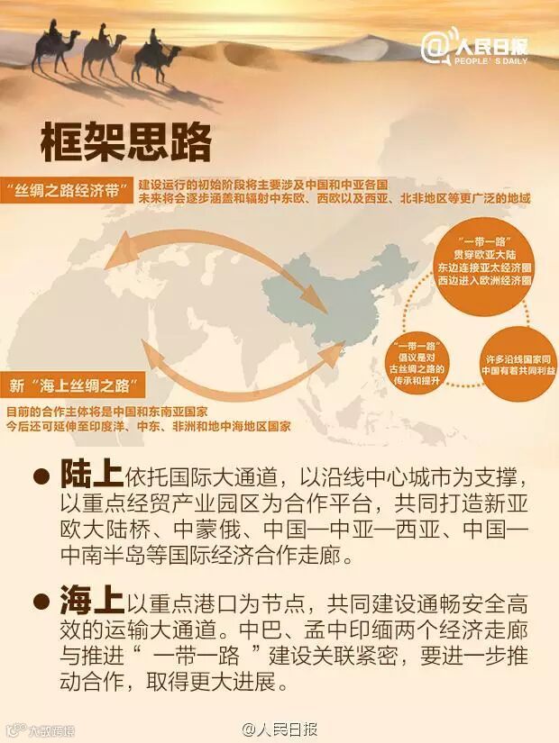 期待已久的“一带一路”路线图终于出炉。今日,国家发改委、外交部、商务部联合发布了《推动共建丝绸之路经济带和21世纪海上丝绸之路的愿景与行动》。那么,听起来高大上的“一带一路”究竟是怎么回事?9张图带您快速读懂。