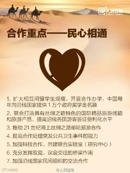 - 民心相通。中国每年向沿线国家提供1万个政府奖学金名额。