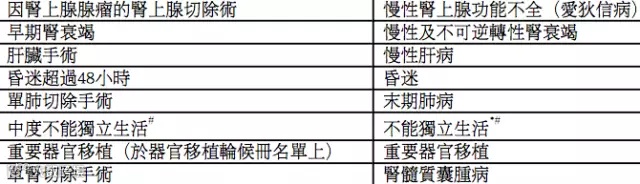 2、 50-100种不等的中间档疾病,此类疾病继续恶化就可能演变成最严重的那类疾病,中间档疾病赔付一次,不占用总保障额度,如下图所示(摘自安盛公司康采条款)右一栏是最严重档疾病,左一栏是中间档疾病,比如昏迷48小时没有达到一般重疾险的赔付标准,却可以在中间档疾病进行赔付;