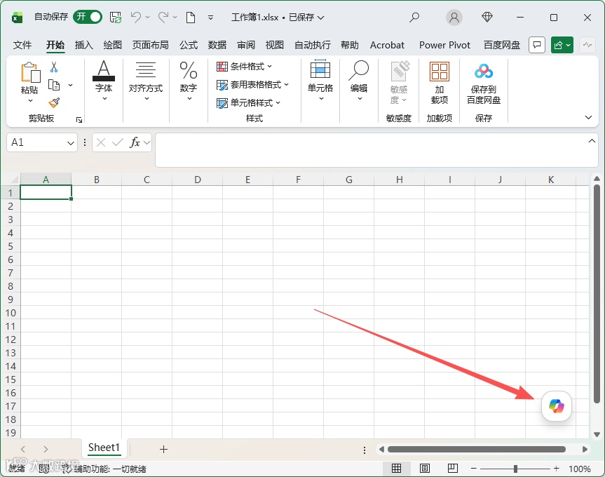对比Word应用,Copilot功能运行正常。进一步核查发现,Excel中按钮已迁移至窗口右下角。